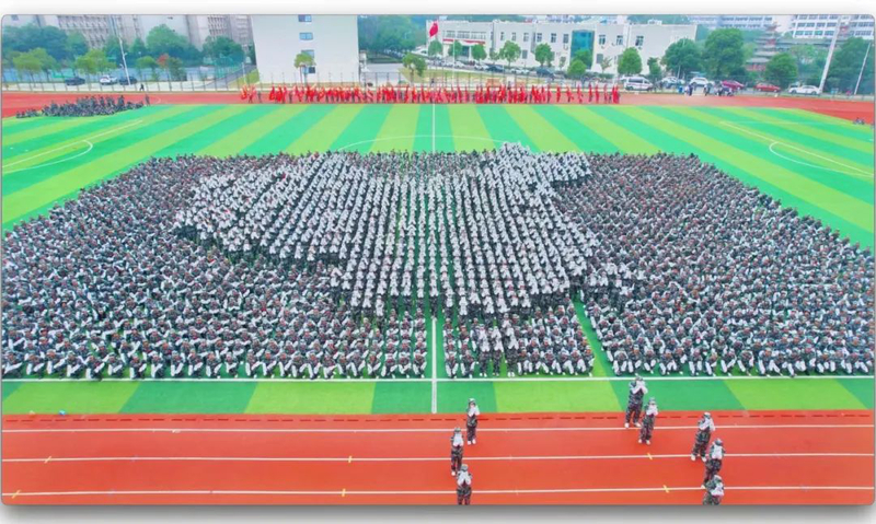 接着进行新生军训成果汇报,经过半个月的紧张军训,新同学们以崭新的精神风貌一展训练成果。防暴方阵、队列方阵、格斗方阵和战术方阵在教官的指挥下依次进行了精彩展示,赢得了现场阵阵掌声。最后,由3200名新生组成的队形方阵更是将本次军训成果展示推向了高潮,通过队形变化呈现了“2023”名新生从五湖四海来到“洞庭之滨、岳阳楼下”的生动画面,深刻表达了对祖国的挚爱、对学校的热爱。